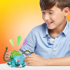 PRODUTO INTERNACIONAL. Prepare-se para batalhas ainda maiores com o conjunto de construção Bulbasaur! Com mais de 4 polegadas de altura, este Pokémon do tipo Grama é perfeito para criar cenas heroicas de batalha em diferentes posições. Com detalhes autênticos de efeitos de batalha, este modelo é fielmente construído para encantar os fãs de Pokémon de todas as idades