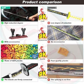 Bloco de construção do modelo de emenda da espada Demon Slayer: Material: Plástico Tipo de plástico: ABS Idade recomendada: Para crianças a partir de 6 anos Tamanho do bloco: Bloco de construção pequeno AVISO PERIGO DE ASFIGURA: Peças pequenas, não adequadas para crianças menores de 3 anos Cultivo em seis dimensões: Inspire a criatividade das crianças. Cultive as habilidades de trabalho em equipe das crianças. Exercite a capacidade operacional das crianças. Pratique a capacidade de coordenação das crianças. Inspire as crianças a terem imaginação ilimitada. Melhore a capacidade de pensamento independente das crianças. - autêntico altamente restaurado: Este bloco de construção da espada Demon Slayer é a espada Kamado Tanjiro do anime Demon Slayer, e a espada Tanjiro foi cuidadosamente projetada. A lâmina e o cabo são todos feitos de acordo com a animação autêntico, restaura perfeitamente a imagem vívida de todos os elementos. É um item colecionável legal. - Garantia de qualidade: Nossos tijolos de espada katana são feitos de plástico ABS certificado de acordo com os padrões ambientais internacionais e testados pela ASTM F963-17 e CPSIA. Após 10 processos industriais, corte CNC preciso e processamento avançado de cores, certifique-se de que cada peça esteja firmemente conectada, não deformada ou desbotada. - Tamanho Katana regular: Esta espada katana contém 759 blocos, vem com uma bainha e um suporte. Esta espada Tanjiro é composta de blocos de construção de alta qualidade. O comprimento de 101,6 cm o torna mais próximo de uma espada katana, dando a você uma aderência perfeita, é a melhor escolha para cosplay. Observe que ele suporta apenas oscilação de luz, por favor, não o balance vigorosamente. - Melhor escolha para fãs de anime: esta espada de anime é o melhor presente para fãs de Demon Slayer que procuram, este kit de modelo é perfeito para quem ama colecionáveis de Demon Slayer, e para os amantes de blocos de montar que procuram um projeto diferente, é um tributo divertido e realista a Kamado Tanjiro do anime Demon Slayer. - Projetos STEM para crianças: a espada Tanjiro é compatível com as principais marcas, este conjunto de blocos de construção inclui manuais de instruções coloridos, através da montagem de blocos de construção, pode promover a coordenação olho-mão das crianças, pensamento divergente e capacidade de resolução de problemas, e estimula sua criatividade e imaginação.