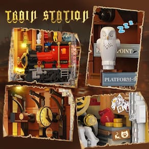 Conjunto de construção HOGOKIDS Magic Train Station Book Nook com luz