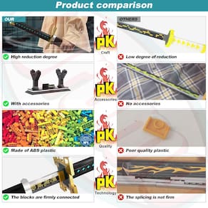 Modelo Demon Slayer Sword Splicing Bloco de construção: Material: plástico Tipo de plástico: ABS Idade recomendada: para crianças maiores de 6 anos Tamanho do bloco: bloco de construção pequeno AVISO RISCO DE ASFIXIA: peças pequenas, não adequadas para crianças menores de 3 anos Cultivo em seis dimensões: inspire a criatividade das crianças. Cultive as habilidades de trabalho em equipe das crianças. Exercite a capacidade operacional das crianças. Pratique a capacidade de coordenação das crianças. Inspire as crianças a terem imaginação ilimitada. Melhore a capacidade de pensamento independente das crianças. - autêntico altamente restaurado: este bloco de construção da espada Demon Slayer é a espada Tokitou Muichirou do anime Demon Slayer, e a espada Tokitou foi cuidadosamente projetada. A lâmina e o cabo são todos feitos de acordo com a animação autêntico. Restaura perfeitamente a imagem vívida de todos os elementos. É um item de coleção bacana. - Garantia de qualidade: nossos tijolos de espada katana são feitos de plástico ABS certificado de acordo com padrões ambientais internacionais e testados pela ASTM F963-17 e CPSIA. Após 10 processos industriais, corte CNC preciso e processamento avançado de cores, certifique-se de que cada peça esteja firmemente conectada, não deformada ou desbotada. - Tamanho normal de katana: esta espada katana contém 771 blocos, vem com uma bainha e um suporte. Esta espada Tokitou é composta por blocos de construção de alta qualidade. O comprimento de 40 polegadas o aproxima de uma espada katana, proporcionando uma pegada perfeita. É a melhor escolha para cosplay. Observe que ele suporta apenas oscilações leves, por favor, não o balance vigorosamente. - Melhor escolha para fãs de anime: esta espada de anime é o melhor presente para os fãs de Demon Slayer que procuram, este kit de modelo é perfeito para quem adora itens colecionáveis de Demon Slayer e para amantes de blocos de construção que procuram um projeto diferente, é uma homenagem divertida e realista a Tokitou Muichirou do anime Demon Slayer. - Projetos STEM para crianças: a espada Tokitou é compatível com as principais marcas. Este conjunto de blocos de construção inclui manuais de instruções coloridos. Por meio da montagem de blocos de construção, pode promover a coordenação olho-mão das crianças, o pensamento divergente e a capacidade de resolução de problemas, além de estimular sua criatividade e imaginação.