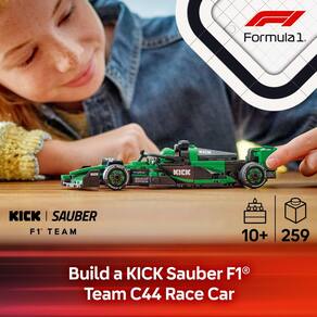 - Minifigura de motorista – o conjunto de veículos inclui uma mini figura de motorista usando uma roupa da equipe KICK Sauber F1 e um capacete alado para as crianças colocarem dentro da cabine e encenar uma emocionante ação de corrida