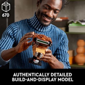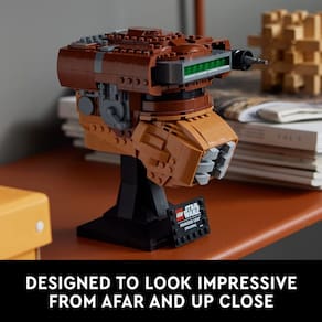 Preste homenagem a um personagem lendário com este capacete LEGO Star Wars Princesa Leia (Boushh) (75351) para adultos. Canalize sua força criativa para recriar o capacete de caçador de recompensas utilizado pela princesa Leia como um disfarce para entrar no palácio de Jabba the Hutt em Star Wars: Return of the Jedi. Um suporte montável com uma placa de identificação completa uma peça central admirável. - Esteja em sintonia com sua força criativa – Foco semelhante ao Jedi do Canal para construir este capacete detalhado da Princesa Leia (Boushh) da LEGO Star Wars 75351 com um suporte de exibição de tijolos e placa de identificação impressa - Feito para exibição – Ilumine memórias da clássica cena Star Wars: O Retorno de Jedi em que a Princesa Leia se disfarçou de caçadora de recompensas Boushh para entrar no palácio de Jabba the Hutt - Construa sua coleção – O lançamento deste conjunto colecionável marca o 40º aniversário de Star Wars: O Retorno de Jedi e faz parte de uma série de modelos de capacete de LEGO Star Wars para exibição - Ideia de presente – Este conjunto de 670 peças é um presente para você ou um presente de aniversário ou feriado para um fã adulto de Star Wars, construtor de LEGO ou colecionador de capacetes LEGO Star Wars - Modelo compacto e montável para um grande impacto visual – Esta réplica de capacete da Princesa Leia (Boushh) mede mais de 16,5 cm. (17 cm) de altura, 11,4 cm. (11 cm) de largura e 5,5 polegadas. (14 cm) de profundidade - Instruções passo a passo – Encontre instruções ilustradas na caixa e no aplicativo LEGO Builder - De uma galáxia muito, muito distante para sua sala de estar – os conjuntos LEGO Star Wars para adultos são projetados para pessoas como você que gostam de hobbies criativos e práticos para relaxar