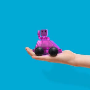 O que o torna único: projetado exclusivamente para percorrer praças tradicionais, bem como nossas novas rampas e estradas, oferecendo uma maneira sem frustrações de introduzir o aprendizado de movimento e STEAM no tempo de jogo da construção magnética.