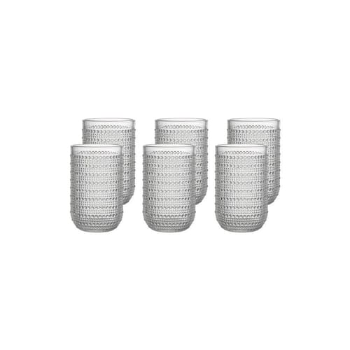 Com design vintage e detalhes em relevo de esferas, os copos tornam-se peças decorativas que valorizam a mesa posta ou compõem com charme bandejas e cristaleiras. Perfeitos para servir água, sucos, refrigerantes ou drinks, eles são versáteis para todas as ocasiões: desde um almoço em família até um jantar com convidados.