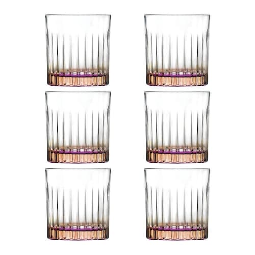A Biona quer estar presente em todos os momentos das pessoas, todos os dias. Para isso, a marca também oferece uma linha de cristais finos, ideais para complementar a mesa com produtos de altíssima qualidade e sofisticação, além de apresentar valores mais acessíveis e composições diferenciadas das existentes no mercado. O copo On The Rocks do modelo Mezcla possui formato reto e traz todos os benefícios de degustar esta bebida, normalmente destilada e servida sobre pedras de gelo, mas que também pode ser apreciada em temperatura ambiente. A decoração Mezcla traz linhas retas e a união de cores no fundo do copo, proporcionando alegria, sofisticação e irreverência à mesa. O conjunto é composto por 6 copos. Conteúdo da embalagem: 6 copos on the rocks com 8,6 cm de altura e 360 ml de capacidade- Garantia: 3 Meses para Defeitos de fabricação- Marca: Biona- Uso: Não utilizar em micro-ondas- Tipo da embalagem: Papelão pardo- Material: Cristal- Cor: Transparente- Decoração: Lapidada- Formato: Reto- Formato de vendas: Kit- Unidades por kit: 6- é produto personalizado: Não- Capacidade: 360ml Marca: Oxoford