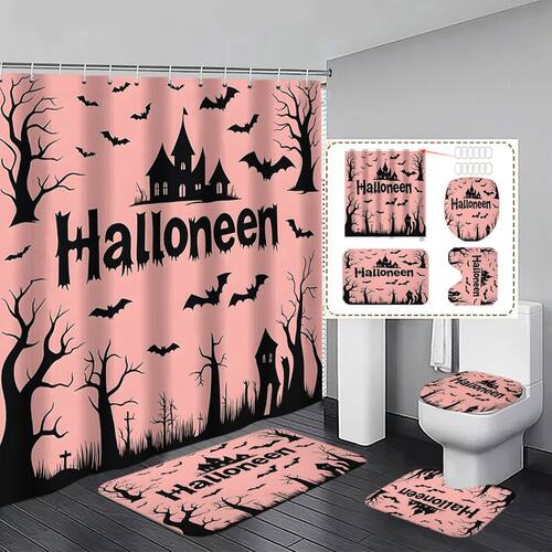 Tamanho do tapete antiderrapante: 45* 38 cm; tamanho do tapete de banho: 74* 45 cm; tamanho do assento do vaso sanitário: 35* 45 cm; tamanho da cortina de chuveiro: 180* 180 cm; peso: 675 g; material: poliéster; cor: igual à primeira foto; pacote: 1 x tapete antiderrapante, 1 x tapete antiderrapante de banheiro, 1 x assento sanitário, 1 x cortina de chuveiro (cor igual à imagem principal) Spooky Design de Halloween: com uma cena divertida e assustadora de Halloween com morcegos, fantasmas e árvores assustadoras, este conjunto de cortinas de chuveiro cria o ambiente perfeito de Halloween em seu banheiro. Material durável e impermeável: feita de poliéster de alta qualidade, esta cortina de chuveiro é resistente à água e durável, proporcionando desempenho duradouro para todas as suas necessidades de banheiro. Conjunto completo de decoração de banheiro: inclui uma cortina de chuveiro (180x180cm), tapete de banho antiderrapante (74x45cm), tampa da tampa do vaso sanitário (35x45cm) e tapete (45x38cm) para uma aparência de banheiro coesa e elegante. Fácil de limpar e manter: o tecido de poliéster é lavável à máquina, facilitando a limpeza e a manutenção, garantindo que seu banheiro permaneça fresco e festivo durante toda a temporada. Perfeito para amantes do Halloween: ideal para quem adora o Halloween, este conjunto de banheiro divertido e assustador traz o espírito da temporada para o seu banheiro com cores vibrantes e designs assustadores.