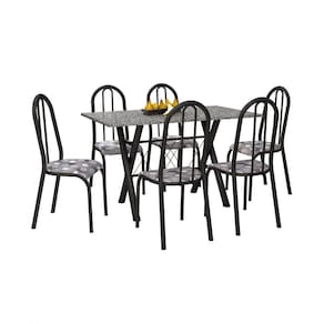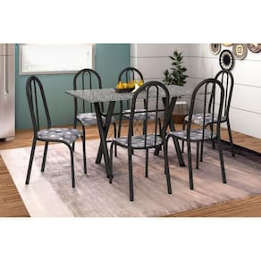 Para renovar sua cozinha o conjunto de mesa compacto, com um design inovador que traz requinte e praticidade para sua casa, fabricado em aço carbono, pintura epóxi a pó que garantem maior durabilidades dos produtos. Acabamento da Cadeira/Banco: Pintura Epóxi Acabamento da Mesa: Pintura Epóxi Almofada do assento: Fixa Altura do Conjunto: 75 cm Ambiente Principal: Cozinha Cadeira/Banco estofada: Sim Cadeira/Banco suporta até: 120 kg Complexidade da Montagem: Baixa: pode ser montado por uma pessoa sozinha Cor: PRETO CRAQUEADO/PARA Cor do Produto: PRETO CRAQUEADO/PARA Enchimento do Assento: Espuma D-15 Escala de Brilho: Fosco Espessura do Tampo: 15 mm Estrutura do Assento: AÇO Estrutura do Encosto: Aço Itens Inclusos: 1 Conjunto, Kit Ferragens e Manual de Montagem Manual de Montagem e Instalação: https://cdn2.madeiramadeira.com.br/atributo/artefamol/793734-manual-montagem-deise-jpeg.pdf Material da Base da Mesa: Aço Material da Estrutura da Cadeira: Aço Medida da Cadeira/Banco (A x L x P): 97cmx37cmx44cm Medida da Mesa (A x L x P): 75cmx75cmx140cm Medida do Tampo (L x C x E): 75cmx140cm1,5cm Mesa suporta até: 40 kg Necessita Montagem: Sim Origem do Produto: Nacional Peso da Cadeira/Banco: 3,39 kg Peso da Mesa: 62,81 kg Possui Apoio para Braços: Não Possui Apoio Para os Pés: Não Possui Suporte Giratório: Não Recomendações de Uso, Manutenção e Limpeza: Limpar com pano levemente umedecido Revestimento da Cadeira/Banco: Napa Sistema de Montagem: Parafusos