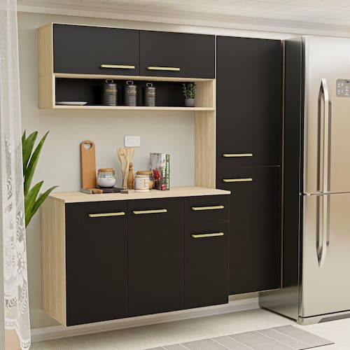 Juntos, construímos a sua satisfação! Acabamento da Prateleira: Finish Foil Escala de Brilho da Prateleira: Semi-Brilho Acabamento da Gaveta: Finish Foil Escala de Brilho da Gaveta: Semi-Brilho Material do Puxador da Gaveta: Poliestireno Acabamento da Porta: Finish Foil Escala de Brilho da Porta: Semi-Brilho Material do Puxador da Porta: Poliestireno Acompanha Rodapé Decorativo: Não Acompanha Tampo: Sim Ambiente Principal: Cozinha Balcão Suporta Pia: Não codigo_ean: 7900288359490 Complexidade da Montagem: Média: pode ser montado por mais de uma pessoa e/ou necessite de maior conhecimento para montagem Cor: Dubai/Preto Cor do Produto: Dubai/Preto Cor Flex: Não Cor Interna: Preto Escala de Brilho: Semi-Brilho Espessura do Material da Estrutura: 15 mm Espessura do Tampo: 15 mm Gaveta com Chave: Não Informações Complementares: Suspenso Itens Inclusos: 1 Balcão Auxiliar, 1 Armário Aéreo, 1 Paneleiro, Kit Ferragem e Manual de Montagem Linha ou Coleção: Aura Manual de Especificação Técnica: https://product-hub-prd.madeiramadeira.com.br/207089303/documents/eb717ed6-0cf2-4b6c-a2f9-7625960051b93450888525617740074035852.pdf Manual de Montagem e Instalação: https://product-hub-prd.madeiramadeira.com.br/207089303/documents/8883a74c-2cf5-4c1e-8727-b830c071fd613450887525617740073994649.pdf Marca: Netmobil Material da Corrediça: Metálica Material da Dobradiça/Corrediça da Porta: Metálica Material da Gaveta: MDP Material da Porta: MDP Material da Prateleira: MDP modular: Sim Montagem Flex: Não Necessita Montagem: Sim O Balcão Acompanha Pia: Não Origem do Produto: Nacional Peso: 68 kg Peso Máximo por Gaveta: 5 kg Peso Máximo por Prateleira: 10 kg Possui Espelho: Não Possui Possui Pés: Suspenso Possui Portas: Sim Possui Prateleiras: Sim Possui Vidro: Não Produto Montado: Sim Recomendações de Uso, Manutenção e Limpeza: Limpeza com pano úmido, sem produtos químicos Sapatas Niveladoras: Não Sistema de Montagem: Kit Ferragem Suporta Até (kg): 15 kg Tamanho Indicado da Pia: Não indicado colocar Pia Tipo de Corrediça da Gaveta: Metálica Telescópica Tipo de Dobradiça da Porta: Soft close Tipo de Dobradiça/Corrediça da Porta: Soft close Tipo de Puxador da Gaveta: Externo Tipo de Puxador da Porta: Externo undefined: 366484313