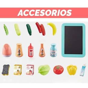Kitchen Toy 42 acessórios Modern Style Pink Que seus filhos sejam os mini chefs que eles sonham em ser! Cozinha de brinquedo de estilo moderno com 42 acessórios, efeitos sonoros e sistema de circulação de água. Pulverizador simulado, saída de água, efeito sonoro de cozinha. Estimula os sentidos das crianças simulando experiências culinárias. Material plástico de proteção ambiental e componentes eletrônicos, não tóxicos e práticos. Padrão e ativo, faz com que as crianças tenham uma experiência divertida. Dimensões: 63 cm de altura × 22 cm de largura × 45 cm de comprimento. • Com luzes e sons reais • Circulação interna de água • Ardósia de giz • Throw Steam • Inclui mais de 35 acessórios • Cor: rosa • Material: plástico