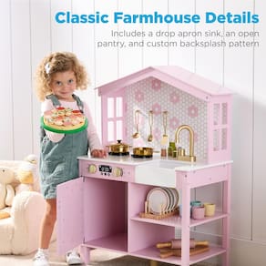 Especificações: Dimensões gerais: 25" (C) x 13,5” (L) x 35,5” (A) Do chão ao balcão: 20" (A) Peso: 20 libras. Material: madeira, metal Recomendado para maiores de 3 anos A montagem necessária (com instruções) O pacote inclui: cozinha Pretend play (3) Utensílios Forno holandês Panela de molho BCP com certificação ASTM SKU: SKY8647 - DESIGN CLÁSSICO DE FAZENDA: Este brinquedo o conjunto possui janelas personalizadas de 4 painéis, um fogão falso e um forno espaçoso com botões realistas, para proporcionar uma culinária envolvente e elegante experiência - Armazenamento de brinquedos embutido: mantenha sua área de recreação limpa e arrumada com esta cozinha infantil, projetada com amplo espaço de armazenamento para acessórios e outros brinquedos, tornando a limpeza rápida e fácil - 5 acessórios incluídos: desperte a criatividade com 3 utensílios de cozinha fingidos, além de uma panela e frigideira para preparar refeições lúdicas criativas - INFORMAÇÕES DE MONTAGEM: Ótimos brinquedos demoram para serem construídos! Dezenas de parafusos e fechos fazem desta uma adição robusta às aventuras domésticas de seu filho; siga atentamente o manual de instruções incluído e veja seu filho expandir sua imaginação! - CERTIFICADO E SEGURO: materiais certificados pela ASTM e CPSIA tornam este conjunto de brinquedos uma opção confiável e divertida para brincar usando materiais divertidos, como madeira projetada com componentes metálicos para durabilidade duradoura.; DIMENSÕES GERAIS: 25" (L) x 13,5” (L) x 35,5” (A)
