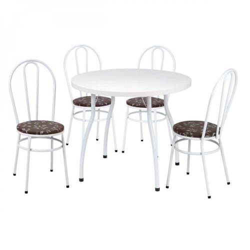+MESA+PARA+COZINHA%0A%0AP%C9S+PINTURA+EPOXI+BRANCA-TAMPO+REDONDO+0.90+BP%0A%0ACADEIRA+TUBO+3%2F4+PINTURA+EPOXI+BRANCA+ASSENTO+CORINO+CAF%C9+FLORAL+%2864%29%0ALimpeza-+Cera+automotiva%28Cera+de+polir+carro%29+ao+menos+uma+vez+ao+m%EAs%0AProduto+para+ambientes+internos+n%E3o+pode+ser+exposto+ao+tempo%0A%0AAmbientes-+Cozinha%2CBares Acabamento da Cadeira/Banco: Pintura Epóxi Acabamento da Mesa: Pintura Epóxi Almofada do assento: Fixa Cadeira/Banco estofada: Sim Cadeira/Banco suporta até: 100 kg Complexidade da Montagem: Baixa: pode ser montado por uma pessoa sozinha Cr do Produto: BRANCO/TABACO Enchimento do Assento: Espuma D-16 Escala de Brilho: Semi-Brilho Espessura do Tampo: 3 mm Estrutura do Assento: AGLOMERADO Formato: Redondo Itens Inclusos: 1 mesa=1 tampo+pes=2 volumes 4 cadeiras=1 volumes total a receber=3 volumes Itens Inclusos: 1 mesa=1 tampo+pes=2 volumes 4 cadeiras=1 volumes total a receber=3 volumes Material da Base da Mesa: Aço Material da Estrutura da Cadeira: Aço Carbono Material do Tampo: MDP Medida da Base (A x L x P): 69X10X10 Medida da Cadeira/Banco (A x L x P): 85X33X38 Medida da Mesa (A x L x P): 90X90X3 Medida do Tampo (L x C x E): 90X90X3 Mesa suporta até: 30 kg Necessita Montagem: Sim Peso da Cadeira/Banco: 3,50 kg Peso da Mesa: 10 kg Possui Apoio para Braços: Não Possui Apoio Para os Pés: Não Possui Suporte Giratório: Não Quantidade de Lugares: 04 Recomendações de Uso, Manutenção e Limpeza: LIMPEZA PES CERA AUTOMOTIVA Revestimento da Cadeira/Banco: Courino Sistema de Montagem: PARAFUSOS