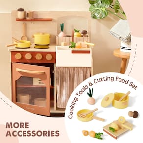 - Cute Kids Kitchen Playset: esta cozinha infantil é adorável, as cores são brilhantes e têm aparência l de madeira. Também vem com divertidos conjuntos de brinquedos para cortar comida e todos os acessórios necessários, como panela e frigideira, espátulas e colher. Um lindo conjunto de brinquedos de cozinha para crianças proporcionará diversão para seus filhos e será uma atraente decoração de casa.