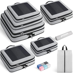 Os organizadores de compressão prezon são a melhor escolha para viajantes que procuram maximizar o espaço e organizar de forma eficiente. Com uma estrutura oca exclusiva, eles não apenas facilitam a embalagem eficiente, mas também estabilizam os itens internos, garantindo que tudo permaneça no lugar durante sua viagem. O sistema de compressão avançado reduz o volume do item em até 60% com seu design inovador de zíper. Além disso, esses cubos incluem uma bolsa de sapatos e saco de roupa para separar roupas sujas e armazenar calçados convenientemente. Projetado como um conjunto de viagem familiar de 8 peças, eles atendem especificamente às necessidades da família, oferecendo amplo espaço para roupas e acessórios. Seja para viagens curtas ou férias prolongadas, esses organizadores oferecem eficiência excepcional e benefícios organizacionais, tornando-os indispensáveis para viagens. - Estrutura oca exclusiva: possui uma malha de alta densidade e durável com uma estrutura oca, permitindo que os usuários organizem e localizem itens rapidamente sem esforço. Este design não apenas aumenta a eficiência da organização da bagagem, mas também garante a estabilidade dos itens dentro da bolsa, permitindo que os usuários encontrem rapidamente e com precisão os itens desejados sempre que abrirem a bolsa. - Sistema avançado de compressão: nosso produto integra um sofisticado sistema de zíper de compressão, reduzindo sem esforço o volume do item em até 60%. Além disso, usar uma borda de expansão de material aniônico ao longo das laterais aumenta a capacidade total de enchimento da mochila em impressionantes 30% em comparação com as embalagens de compressão convencionais. - Armazenamento conveniente: este organizador versátil vem com uma bolsa de sapatos para sandálias ou outros calçados, juntamente com um saco de lavanderia para facilitar a contenção de roupas sujas. Perfeito para manter seus pertences organizados e separados durante viagens ou uso diário. - Conjunto de viagem para a família de 8 peças: este conjunto inclui seis cubos de compressão adaptados para as necessidades de armazenamento da família, complementados por bolsas de lavanderia e sapatos. Seja para viagens curtas ou férias prolongadas, cada cubo acomoda eficientemente roupas e itens para toda a família, facilitando a organização da bagagem. - Promessas de satisfação: oferecer os melhores produtos para atender a todas as suas necessidades sempre foi nosso principal objetivo. Garantimos todos os nossos produtos prezon e oferecemos uma promessa incondicional de qualidade e artesanato. Sinta-se à vontade para entrar em contato com nosso atendimento ao cliente clicando em "Prezon" sob o carrinho de compras e depois em "Faça uma pergunta".