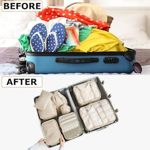 - ?Conjunto de 8 peças de grande capacidade?Diferentes tamanhos de conjuntos de bolsas essenciais de viagem podem armazenar roupas classificadas, roupas sujas, sutiãs, roupas íntimas, calçados, cosméticos, toalhas, artigos de higiene e acessórios eletrônicos. É um bom companheiro de viagem.
