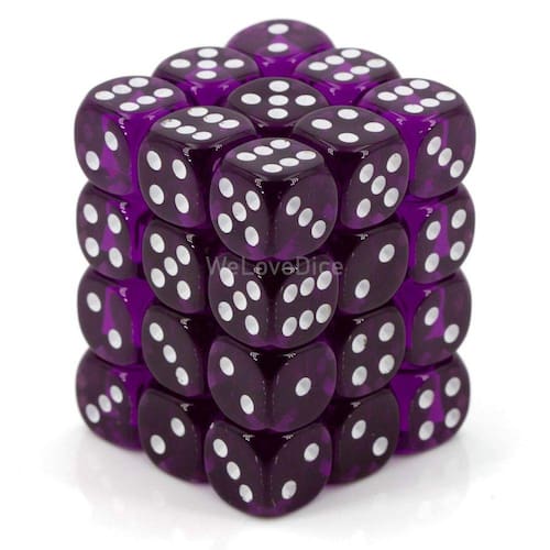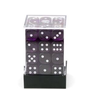 Conjuntos Chessex D6: roxo com branco translúcido - bloco de dados de 12 mm de seis lados (36)