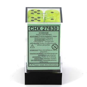 Conjuntos Chessex D6: Vortex Bright Green com preto - Bloco de dados de 16 mm de seis lados (12)