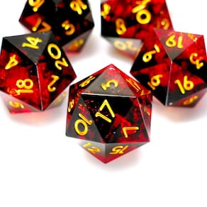 Especificações: Material: resina. Quantidade: 5 peças Peso: 30 ~ 35 g Pacote: D20 x 5 dados, 1 bolsa Fácil de ler: os números claramente exibidos permitem uma leitura rápida ao rolar na mesa - Resina natural, resistente ao desgaste, forte. - cada dado tem uma cor única. - Peso 30 ~ 35 g, 21 mm, o tamanho é um padrão de dados D&D comum no mercado. - Números grandes e fáceis de ler com sensação ponderada e irresistível ao toque. - utilizado para jogos de tabuleiro, jogos RPG de mesa como D&D (Dungeons and Dragons), Shadowrun, Pathfinder, Savage World, Warhammer, Yahtzee, Heroscape e muitos outros RPG, ensino de matemática, etc