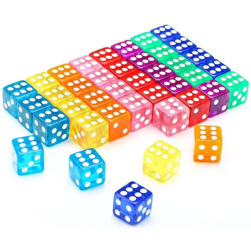 - DADOS DE 40 PEÇAS: Você receberá 40 peças de dados de 6 lados, 5 peças para cada cor, 8 cores no total.