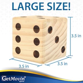 Mova-se com este novo conjunto de dados de madeira gigante que oferece diversão gigante para todas as idades! Nosso jogo Giant Dice dá um novo toque a todos os seus jogos de dados favoritos com o elemento de tamanho e a motivação de jogar ao ar livre! O conjunto inclui seis (6) dados de madeira lindamente elaborados feitos de pinho neozelandês, planilha de pontuação laminada para Yardze e Yardkle, marcador apagável a seco, bolsa de transporte de algodão com cordão e copo rolante gigante! O jogo Giant Dice da GetMovin' é perfeito para festas, churrascos, eventos em grupo, jogos em ambientes fechados e ao ar livre e muito mais!