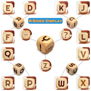 - Conteúdo do conjunto de dados: cada conjunto de dados consiste em 5 dados de madeira e um saco de linho; a superfície de exibição de cada dado é gravada com o seguinte conteúdo: Dados1: A B C D E F; Dados2: G H I J K L; Dados3: M N O P Q R; Dados4: S T U V W X; Dados5: Y? ! - Z; Ele contém letras inglesas de A a Z e 4 símbolos comuns.