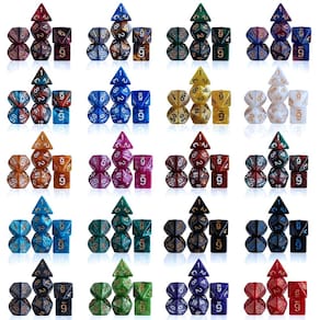 💎. Ampla ocasião aplicável: os dados poliédricos CiaraQ são ótimos para Shadowrun, Pathfinder, Savage World, Warhammer, MTG, Yahtzee, jogos interativos, jogos de cartas, MTG, projetos de ensino, etc. 💎. O pacote inclui: ?. Conjuntos de dados poliédricos de 26 x 7 matrizes. ?. 1 bolsa grande de veludo. 💎. Característica: ?. Os dados DND são feitos de acrílico de alta qualidade, duráveis e leves. Fácil de enrolar e difícil de danificar, com bom polimento. ?. Os números dourados são tão grandes quanto possível em cada face para facilitar a leitura. ?. A cor do Gaming Dice Set é rica e variada, você pode ter uma variedade de opções. ?. Um único conjunto de 7 matrizes contém um d20, um d12, dois d10 (00-90 e 0-9), um d8, um d6 e um d4. 💎. Bolsa de armazenamento: ?. O padrão dourado na bolsa é o método de impressão dourada, para armazenar dados e tornar os dados DND mais sofisticados, de alta qualidade e maior valor de coleção. A bolsa mede 9,5 x 6,3 polegadas (24* 16 cm). 💎. Dicas quentes: ?. Se você receber matrizes defeituosas ou conjuntos de matrizes ausentes, para substituí-las. ?. Peças pequenas, mantenha-as longe do alcance das crianças. É necessária a supervisão de um adulto. - Super conjunto de dados: 26 conjuntos de dados DND (182 unidades no total), 1 grande bolsa preta com cordão. Incluindo 6 conjuntos de dados de duas cores. - Material: Esses dados poliédricos são feitos de material acrílico de alta qualidade, durável e leve. - Cada conjunto de 7 matrizes: um d20, um d12, dois d10 (00-90 e 0-9), um d8, um d6 e um d4. - Fácil de ler: os números na superfície do dado, usando sublinhados para diferenciar 6 e 9. - Dicas: objetos reais são mais bonitos do que fotos. Se você receber algum dado perdido ou danificado, para substituição ou reembolso.
