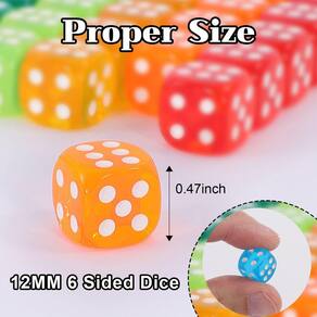 - 🌿 Tamanho apropriado: todos os dados têm formato padrão de 6 lados, cada dado translúcido a granel é de 0,47 polegadas (12 mm), pequeno o suficiente para colocar no bolso e carregar para qualquer lugar, fácil de jogar ou virar. Você pode usar sua imaginação para criar seu próprio jogo de dados
