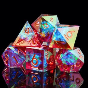 YEMEKO Conjunto de dados a laser DND Rainbow Dungeons and Dragons com revestimento iônico iridescente, dados poliédricos com borda afiada de resina para RPG, jogos de mesa MTG (pôr do sol vermelho) - ?Conjunto de dados icônicos iridescentes?Cada dado DND tem uma casca de resina transparente com um lindo revestimento iridescente de arco-íris, que mudará de cor à luz do sol, tornando esses dados verdadeiramente mágicos. Os dados poliédricos têm excelente equilíbrio para uma ótima experiência de jogo. - ?Conjunto de dados do pôr do sol vermelho a laser?O conjunto de dados tem uma casca de resina verde-roxa gradiente com um revestimento iridescente e flocos verdes. brilha como o pôr do sol vermelho - Conjunto de dados com bordas afiadas: o conjunto de dados é um padrão de dados D&D comum no mercado. Cada dado é derramado à mão com artesanato premium, bordas afiadas e superfícies lisas. A estrutura de resina de bordas afiadas permite rolos mais aleatórios em comparação com os dados RPG tradicionais de bordas arredondadas. - ?Multiusos?utilizado para jogos de tabuleiro e jogos de RPG de mesa, como D&D (Dungeons and Dragons), Pathfinder, Savage World, Warhammer, Yahtzee, Heroscape, Amazing Tales, Gathering, e muitos outros RPGs, etc. - Compre com confiança: estamos comprometidos em fornecer o melhor produto e excelentes serviços para você. Se ocorrer algum problema de qualidade, não hesite em recorrer ao nosso serviço de atendimento ao cliente para obter ajuda, não pouparemos esforços para ajudá-lo a resolver o problema.
