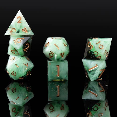 Dados - Material dos dados: resina natural, resistente ao desgaste, forte. A resina natural pode efetivamente evitar arranhões, dados de resina como os novos por um longo tempo. Dica: cada dado tem uma cor única e pode haver algumas diferenças. - Especificação do conjunto de dados DND: 7 peças por conjunto, inclui D4, D6, D8, D10, D12, D20 e D%. Cada dado afiado de resina é lixado e polido à mão para manter suas belas bordas afiadas. - Leitura fácil e boa sensação: números grandes e fáceis de ler com sensação de mão irresistível e pesada. O tamanho é um padrão comum de dados D&D no mercado. - Multiuso: utilizado para jogos de tabuleiro, jogos RPG de mesa como D&D (Dungeons and Dragons), Shadowrun, Pathfinder, Savage World, Warhammer, Yahtzee, Heroscape e muitos outros RPGs, etc. - Compre com confiança: estamos comprometidos em fornecer o melhor produto e excelentes serviços para você. Se ocorrer algum problema de qualidade, não hesite em recorrer ao nosso serviço de atendimento ao cliente para obter ajuda, não pouparemos esforços para ajudá-lo a resolver o problema.