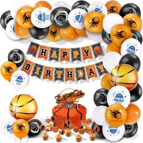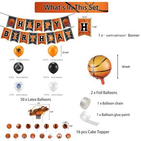 Kit completo de festa de basquete: este conjunto inclui um banner de “Feliz Aniversário” com tema de basquete, balões de látex, coberturas de bolo e palhetas de cupcake, criando uma atmosfera empolgante para sua celebração. Látex e cartolina duráveis: os materiais de látex e cartolina de alta qualidade garantem que as decorações permaneçam vibrantes e resistentes para um evento divertido e duradouro. Perfeito para fãs de basquete: seja uma festa de aniversário, comemoração do dia do jogo ou evento com tema esportivo, este kit é perfeito para meninos e amantes do basquete de todas as idades. Design de basquete atraente: com gráficos de jogadores de basquete, aros e bolas de basquete, este conjunto dá vida à energia e à emoção do jogo em seu evento. Fácil de configurar: basta inflar os balões, pendurar o banner e configurar as coberturas de bolo para uma configuração descomplicada que torna a decoração de sua festa com tema de basquete rápida e divertida.
