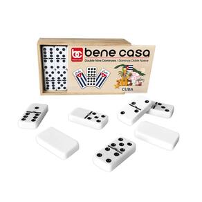 Bene Casa - Conjunto de dominó Double Nines com bandeira cubana - 2 a 10 jogadores - Caixa de madeira com 55 dominós