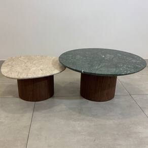 Outra com tampo redondo em Mármore Travertino