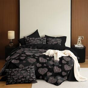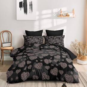 O conjunto de edredom casal Love é estampado apenas na frente; as costas são sujas.
