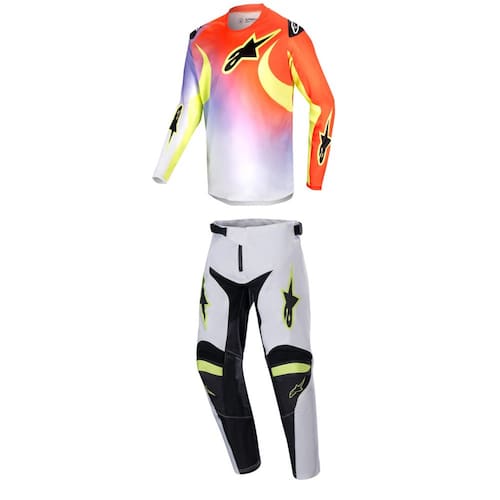 Conjunto de equipamentos de moto Alpinestars Racer Lucent branco/vermelho neon/amarelo