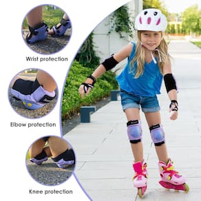 Conjunto de 6 peças de equipamento de proteção infantil Bosoner, joelheiras e cotoveleiras de ciclismo com protetores de pulso