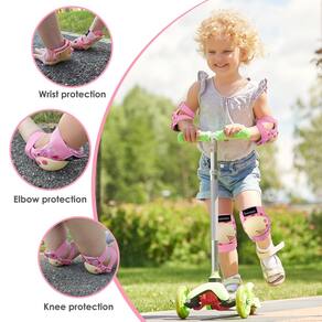 Tamanho P adequado para: 3-7 anos; joelheira: aprox. 4,9 x 4,1 polegadas (12,5 x 10,5 cm); Cotoveleira: Aprox. 4,5 x 3,5 polegadas (11,5 x 9 cm); almofada de pulso: aprox. 12,5 x 8,1 cm.