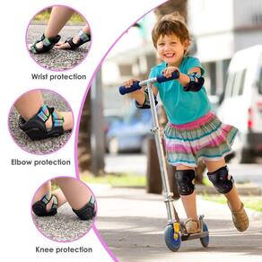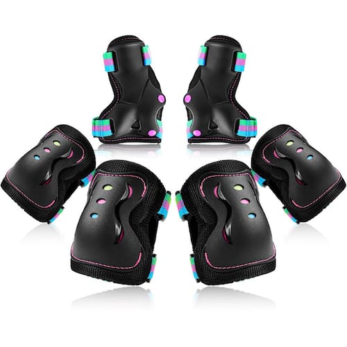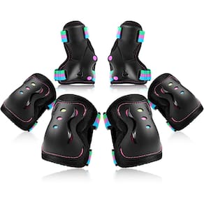 - Tecidos ventilados – o conjunto de joelheiras e cotoveleiras infantis BOSONER é feito de tecidos duráveis de alta qualidade, com enchimento de espuma EVA e tampas de cobertura total de policarbonato, que tem boa absorção de choque e efeito de amortecimento para reduzir os danos causados por quedas esportivas