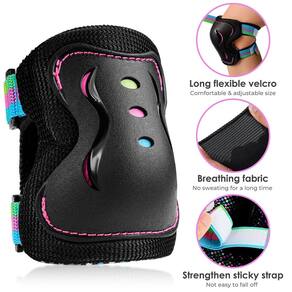 - Ajuste elástico flexível – As almofadas de skate BOSONER para crianças e protetores de pulso adotam correias elásticas ajustáveis e fechos de fecho aderente para se ajustar firmemente ao seu joelho e cotovelo