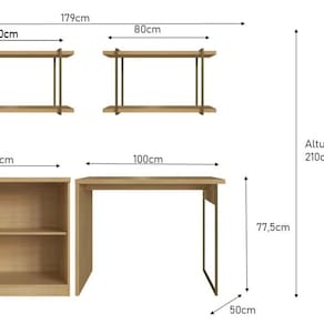 Transforme seu espaço com este conjunto funcional e elegante, composto por mesa de escritório, 2 nichos aéreos e armário com 2 portas. Seu design sofisticado combina detalhes provençais e estrutura em metalon, garantindo um toque clássico e moderno ao ambiente.