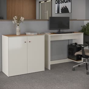 O Conjunto de Escritório Smart Office é compacto e funcional, ideal para ambientes profissionais e home office. Contando com seu Aparador Buffetde 2 Portas com dobradiças metálicas e a Escrivaninha com passa fios e suporte para CPU, ambos com tampo em MDF usinado e sapatas de PVC, unindo design moderno e praticidade. Confira a linha Smart completa em nossos anúncios e transforme seu espaço com inteligência e estilo!