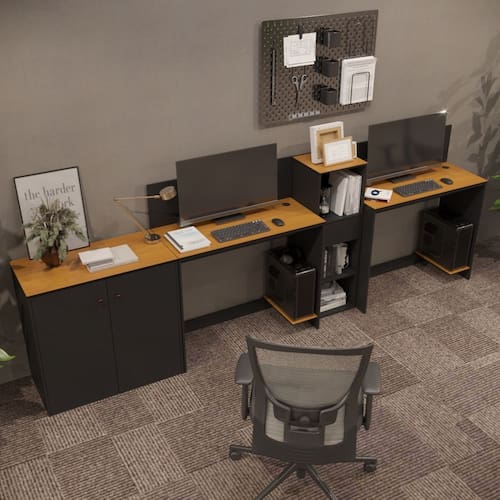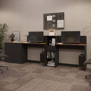 - Conteúdo da Embalagem: 02 Escrivaninha, 01 Livreiro, 01 Buffet e 01 Kit Divisórias - Entregue em: 5 Volumes.