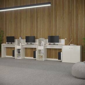 O Conjunto de Escritório Smart é compacto e funcional, ideal para ambientes profissionais e home office. Contando com sua Escrivaninha com passa fios e suporte para CPU,Buffet Aparador com 2 Portas e dobradiças metálicas e o Armário é compacto e funcional, com 3 nichos e 1 gaveta. Todos com tampo em MDF usinado e sapatas de PVC, unindo design moderno e praticidade. Confira a linha Smart completa em nossos anúncios e transforme seu espaço com inteligência e estilo!