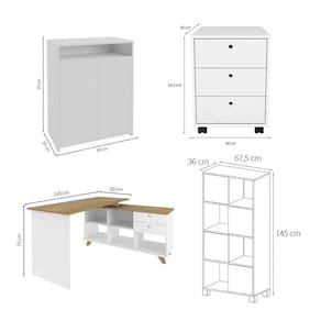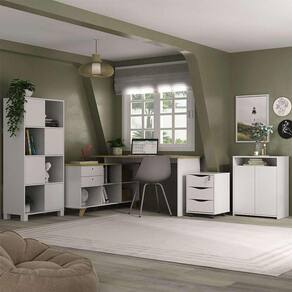 que tal o conjunto de escritório wally gold cool? para deixar seu escritório completo e bem organizado, aposte no conjunto wally gold cool! composto por escrivaninha, gaveteiro, armário e estante, o kit não só recebe seus objetos de trabalho, como notebook e cadernos, como também acomoda documentos, itens de papelaria, livros, peças decorativas e tudo mais que precisar estar por perto. de visual sóbrio, as peças são de fácil combinação em qualquer estilo de decoração e em diferentes ambientes, daí é só escolher o cantinho de casa para se concentrar e aproveitar todos esses benefícios.