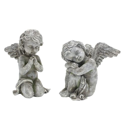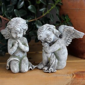 Material: Resina Tamanho: 7-11,6 cm, consulte a imagem para obter detalhes de tamanho específico Peso: 411 g ['Charming Angel Duo — Inclui duas estátuas de anjos de resina em poses de oração e descanso, projetadas com textura vintage para adicionar elegância pacífica a qualquer decoração de jardim ou ambiente interno. ', 'Acabamento envelhecido antigo — Feita com um efeito de pedra envelhecida, cada escultura traz uma aparência atemporal, perfeita para realçar cantos, pátios, vasos ou caminhos tranquilos. ', 'Material de resina durável — Feitos de resina premium, esses ornamentos de figuras são resistentes a elementos externos, adequados para exposições em pátios, varandas ou gramados durante todo o ano, sem desbotarem facilmente. ', 'Estátua decorativa versátil — ideal para espaços de meditação, áreas memoriais, entradas ou prateleiras internas, criando um ambiente sereno com simbolismo angelical e detalhes artísticos. ', 'Tamanho compacto e fácil colocação — Medindo 7—11,6 cm, essas pequenas estátuas se encaixam perfeitamente em mesas, bordas de vasos de plantas, peitoris de janelas ou entre arranjos florais.']