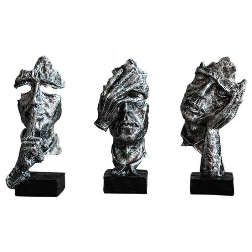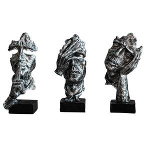 Material: Resina Tamanho: 6,5 x 71 cm Peso: 637 g Conjunto de 3 esculturas expressivas — Esta coleção apresenta três figuras faciais abstratas, cada uma com uma pose única que simboliza silêncio, introspecção e ocultação para profundidade emocional e visual. Estilo minimalista nórdico — Projetadas com acabamento em preto prateado envelhecido e superfície texturizada, essas estátuas trazem a estética da arte contemporânea aos interiores modernos. Tamanho compacto e coordenado — Cada peça tem aproximadamente 6,5 cm de largura e altura proporcional (provável erro de digitação de altura, presumindo ~ 17 cm), perfeita para exibição agrupada em prateleiras ou aparadores. Material de resina durável — Feito de resina de alta qualidade, o conjunto é leve e resistente, oferecendo fácil colocação e apelo decorativo duradouro. Display versátil para qualquer espaço — Ideal para salas de estar, escritórios, estúdios ou prateleiras de galerias, este conjunto de esculturas adiciona caráter artístico e decoração para iniciar uma conversa a qualquer ambiente.