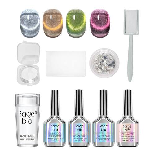 Liberte sua criatividade com o conjunto de esmaltes em gel SAGEBIO Cat Eye, um kit abrangente de arte de unhas que inclui tudo o que você precisa para manicure deslumbrante e exclusiva. Este conjunto possui quatro frascos de 7,5 ml do nosso esmalte de gel olho de gato de alta qualidade, um bastão magnético retangular forte, uma caixa de strass deslumbrantes, um selo de arte de unha, uma cabeça de silicone sobressalente e uma placa raspadora. Nosso esmalte de gel é projetado para proporcionar um acabamento suave e brilhante que dura até quatro semanas. O poderoso bastão magnético permite que você crie designs intrincados de olho de gato, enquanto os strass e o carimbo de arte em unhas oferecem infinitas oportunidades de personalização. O esmalte em gel SAGEBIO é formulado com ingredientes não tóxicos que são suaves para suas unhas e pele, garantindo uma experiência de manicure segura e agradável. Perfeito para artistas profissionais de unhas e entusiastas de bricolage, este kit é embalado lindamente, tornando-o um presente ideal para qualquer ocasião. Seja para aniversários, feriados ou simplesmente para se presentear, o conjunto de esmaltes em gel SAGEBIO Cat Eye certamente impressionará e encantará. - Kit completo de arte de unha: Este conjunto inclui quatro frascos de esmalte de gel olho de gato de 7,5 ml, um bastão magnético retangular forte, uma caixa de strass, um selo de arte de unha, uma cabeça de silicone sobressalente e uma placa raspadora. - Efeito magnético impressionante: obtenha designs fascinantes de olho de gato com nosso esmalte de gel premium e bastão magnético poderoso, permitindo padrões complexos e únicos. - Versátil e criativo: o carimbo de strass e arte de unha incluídos com cabeça de silicone sobressalente e placa raspadora oferecem infinitas possibilidades para designs de unhas criativos e personalizados. - Seguro e não tóxico: Feito com ingredientes não tóxicos e suaves, o esmalte em gel SAGEBIO garante uma experiência de manicure segura e saudável. - Resultados duradouros: Desfrute de um acabamento suave e brilhante que pode durar até quatro semanas com a aplicação adequada, proporcionando resultados de qualidade de salão em casa.