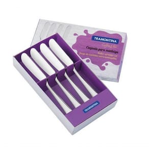 Modo de uso: antes da primeira utilização, remova as eventuais etiquetas e lave com água quente, detergente e esponja macia. Outros tipos de produto como palha de aço, poderão riscar ou prejudicar o acabamento da peça. Enxágue cada item a fim de remover totalmente os resíduos dos produtos de limpeza, que, por serem abrasivos, podem danificar o inox. Sempre que possível, use água quente, pois renova o brilho da peça. Enxaguar e secar bem a peça após a lavagem, caso contrário, as substâncias químicas da água (cloro) poderão causar manchas. Evite atrito entre as peças durante o processo de lavagem e no armazenamento, para mantê-la sem riscos. Na máquina de lavar louças não carregue em demasia a cesta dos talheres. Separe bem as peças, pois o permanente entre elas, durante a secagem, poderá causar manchas. Retire os talheres logo que tenha terminado o ciclo enxaguar, a fim de que eles sejam secados manualmente. Evite o do produto com superfícies quentes, pois elas provocam a descoloração do material. Não guarde a peça em locais úmidos. A umidade também provoca manchas. Para manter o brilho, a Tramontina desenvolveu uma pasta especial para polir e remover manchas nos produtos de aço inox, que está disponível nos principais pontos de venda (94537000).- Foto meramente ilustrativa.