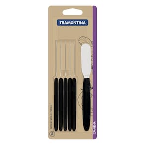 Conjunto de Espátulas para Manteiga Tramontina Ipanema com Lâminas em Aço Inox e Cabos de Polipropileno Preto 6 Peças