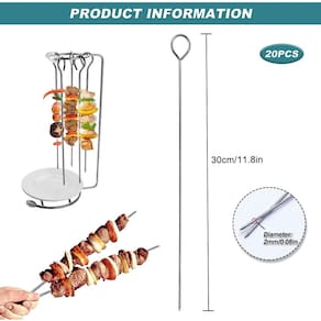 Jogo: Pacote de 20 espetos de churrasco com 30 cm de comprimento. Espeto com 28 cm de comprimento. Ideal para churrascos Para churrasco: palitos para espetos de carne ou vegetais. Também podem ser utilizados com frutos do mar ou para servir frutas em aço inoxidável: espetos de metal em aço inoxidável. Adequado para alimentos e lava-louças\ NHandy: pinchitos de churrasco com pontas afiadas. Superfície quadrada para fixação adicional. Com alça na extremidade