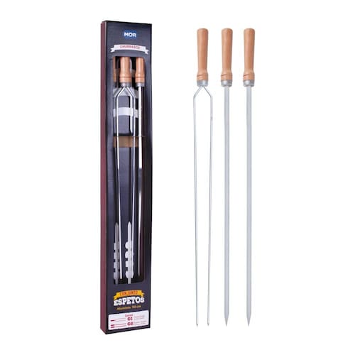 Agora ficou mais prático de fazer um petisco no palito! Produzido em Santa Cruz do Sul, o Conjunto de Espetos em Alumínio 90 cm é um kit que conta com 3 unidades de espetos produzidos em alumínio polido, com cabo em madeira envernizado: perfeitos para você preparar aquele churrasco no capricho e bem reforçado para a sua família e amigos. Devido a sua superfície lisa, o espeto é rápido e simples de limpar. Todos em alta resistência para um churrasco maravilhoso! Ideal para é você que necessita para o seu churrasco, além de ser um excelente presente para os assadores de plantão!