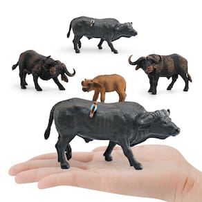 Conjunto de 4 estatuetas de búfalo africano, bonecos realistas de búfalos aquáticos de PVC — Inclui touro atacante, bezerro e búfalo adulto — Brinquedos educativos de animais para crianças, fazendas e vida selvagem Descrição: Material: PVC Tamanho: 1,5 a 13,5 cm Peso: 500 g Características: Conjunto detalhado de búfalos africanos: este conjunto de 5 peças apresenta figuras de búfalo realistas, incluindo um dramático touro atacante, um bezerro e um búfalo aquático adulto, todos feitos de material de PVC durável. Design realista: feitas com detalhes incríveis, essas estatuetas de animais oferecem uma representação realista do búfalo africano, tornando-as perfeitas para brincadeiras educacionais e estudos com animais. Duráveis e seguras: feitas de PVC não tóxico de alta qualidade, essas estatuetas são seguras para crianças com mais de 3 anos e construídas para suportar brincadeiras e exibições de longo prazo sem desbotar ou quebrar. Uso versátil: ideal para criar dioramas com temas da vida selvagem, displays educacionais, conjuntos de brinquedos com animais ou como parte de uma coleção de fazenda, perfeito para decoração de casa ou projetos escolares. Perfeitas para amantes de animais: essas estatuetas são perfeitas para colecionadores, crianças e educadores, oferecendo uma maneira envolvente de ensinar as crianças sobre a vida selvagem africana e os animais de fazenda. O que vem na caixa: 4 x Conjunto de estatuetas de búfalo africano